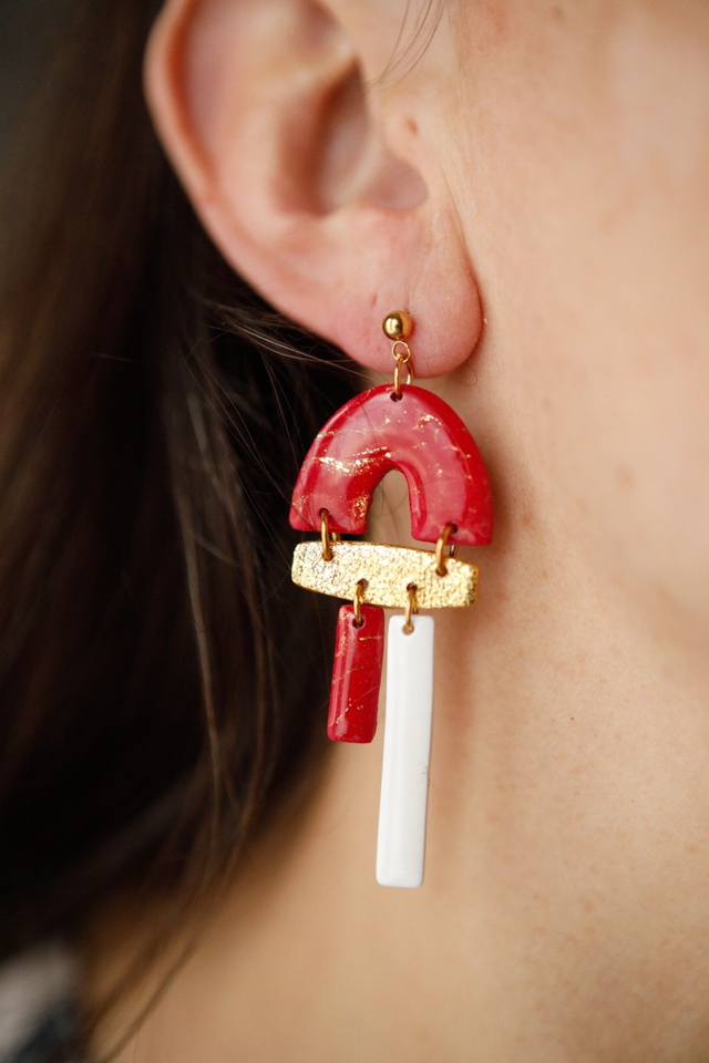 Chaque paire est façonnée à la main en pâte polymère, avec des nuances vibrantes qui rappellent les décorations de Noël et les soirées cocooning.